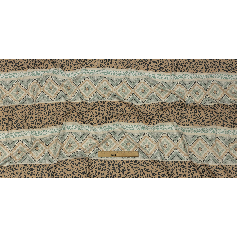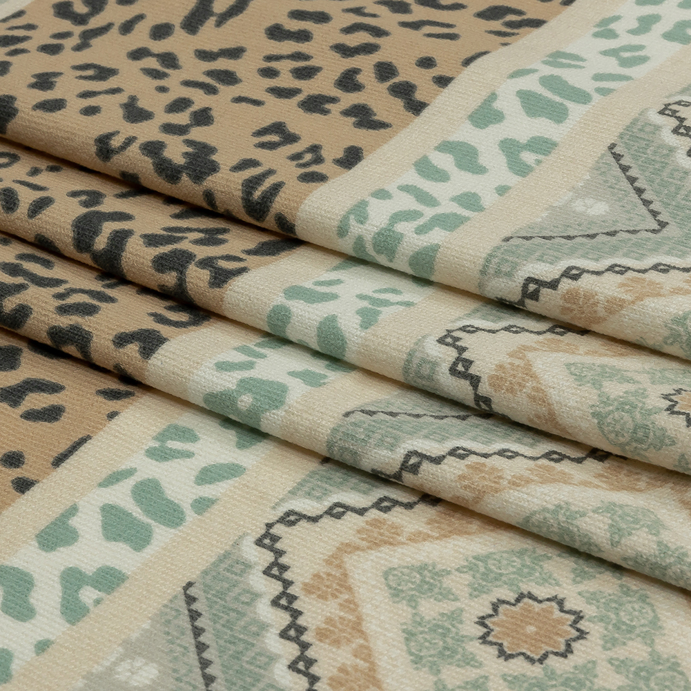 Tan, Mint and White Animal Spots and Geometric Stripes Polyester Sweater Knit