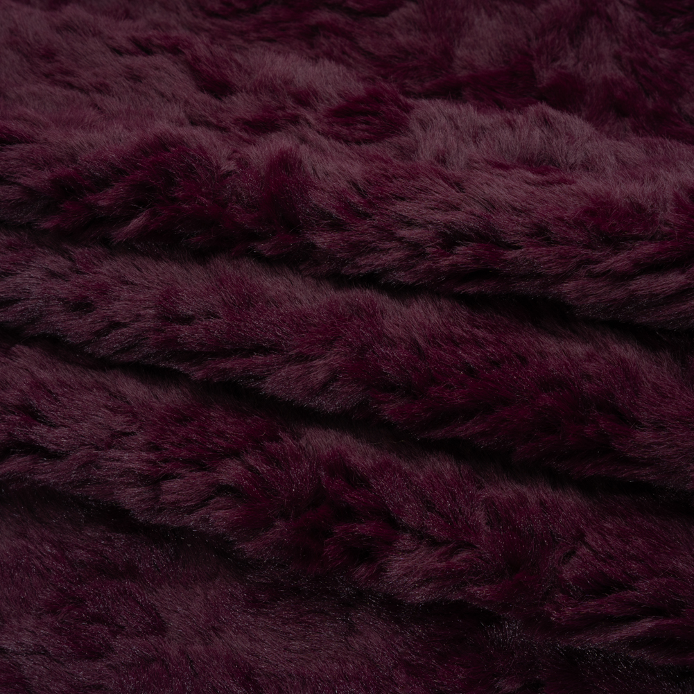 A glass of red wine and this Port Wine Red Textured Medium Pile Recycled Polyester Faux Fur are sure to keep you toasty all night long.
