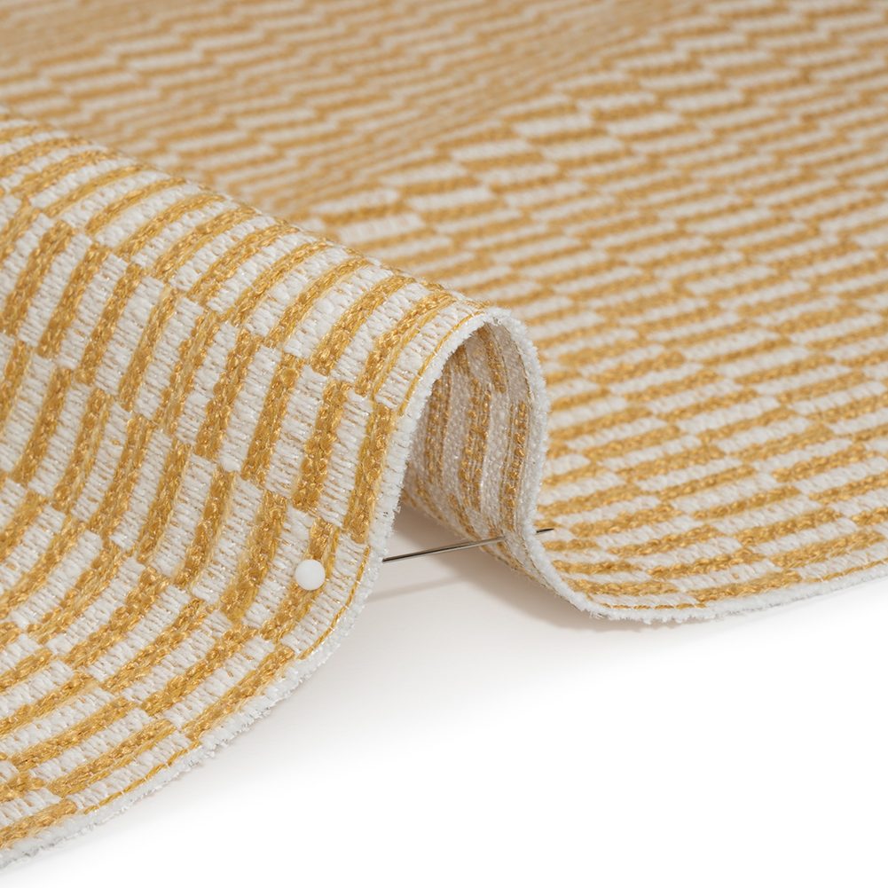 Greet the morning with sun salutations atop this Marigold Rectangle Checks Textured Polyester and Cotton Woven. With a soft, tactile hand and structured yet malleable drape, it’ll easily introduce casual comfort into your interior.Suggested Projects: Sectionals, Armchairs, Stools, JacketsContent: 80% Polyester, 20% CottonStretch: NoneOpacity: OpaqueMarigold yellow and off-white threads interweave in a rectangle checked pattern—the textured weave creating a fabric that’s not only captivating to gaze upon but to touch. The soft, tactile hand and basketweave-look evoke a carefree and natural aura upon your projects. With a structured yet malleable drape, use it to craft stunning and secure sectionals, armchairs to relax upon while reading, and casual barstools to enjoy a drink with friends—or take this fabric into the fashion world by crafting structured jackets, ripe with texture and appeal. Opaque, a lining is not necessary in most applications.