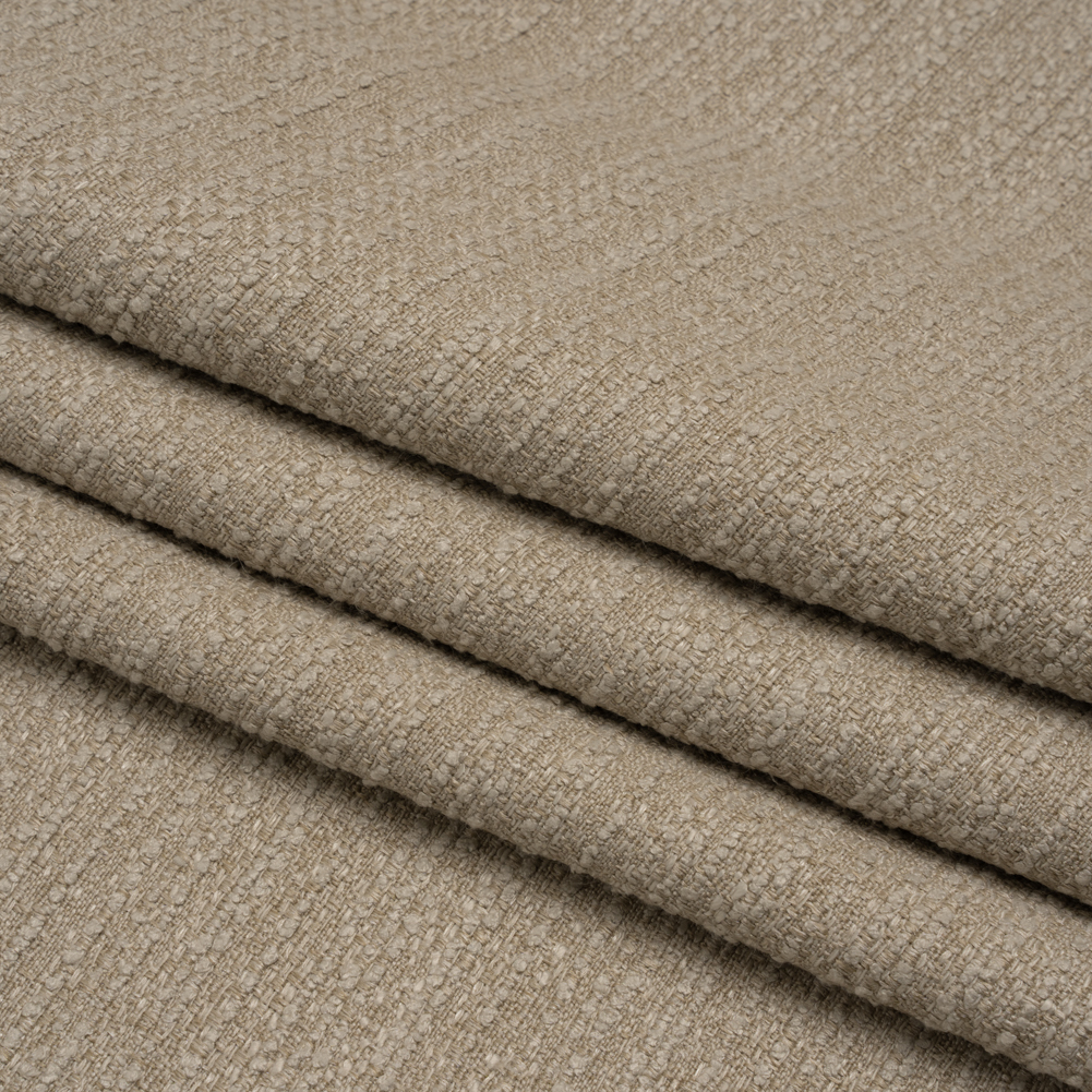 Mold this Putty Boucle Stripes Recycled Polyester Woven to your liking. With a softly tactile hand and supple drape, it’s the perfect choice to add subtle texture to your interior.Suggested Projects: Drapes, Valances, Throw Pillows, HeadboardsContent: 65% Recycled Polyester, 35% PolyesterStretch: NoneOpacity: Mostly OpaqueA boucle construction boasts putty-colored looped stripes across the face of this soft woven—emanating a luxuriously elegant aura. With a supple drape and tactile hand, use it to create billowing drapes, pooling curtains, and elegant valances, or tackle light upholstery projects such as throw pillows and headboards. Mostly opaque, a lining can be used to increase structure and opacity.