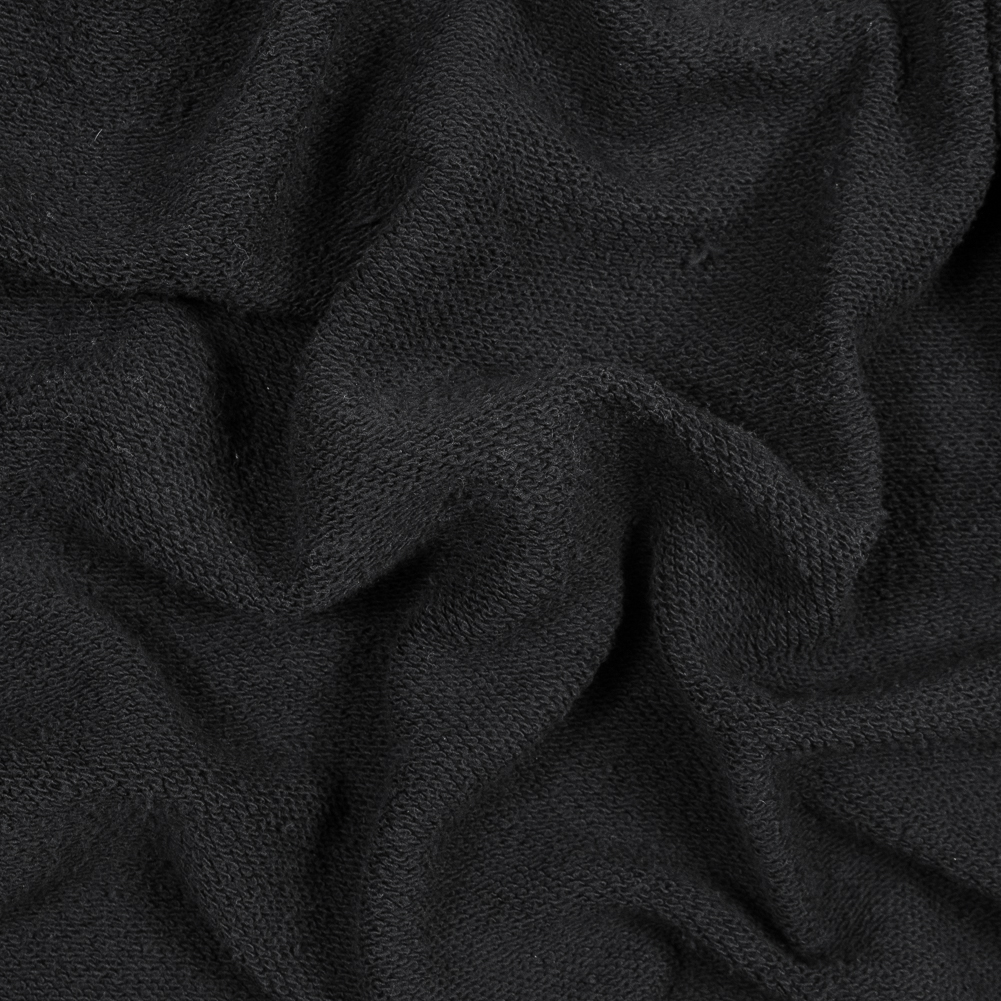 Be comfy and chic in this Black Thick Cotton French Terry. Seriously soft (and we do mean seriously), this knit is not to be passed up on! It's face is smooth, while its back encompasses large un-cut loops that offer even more softness and texture. Thick in hand, this terry is ideal for bathrobes, oversized sweaters and slouchy dresses. Its drape and 4-way stretch provide ultimate comfort. This collection comes in several neutral tones, so you are sure to find the best fit for your look!