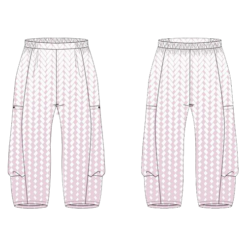 Trio Pants: Ankle-length pants have long cargo pockets with top button or optional zipper closer sewn into side panel seams. Elastic waistband with flat front.