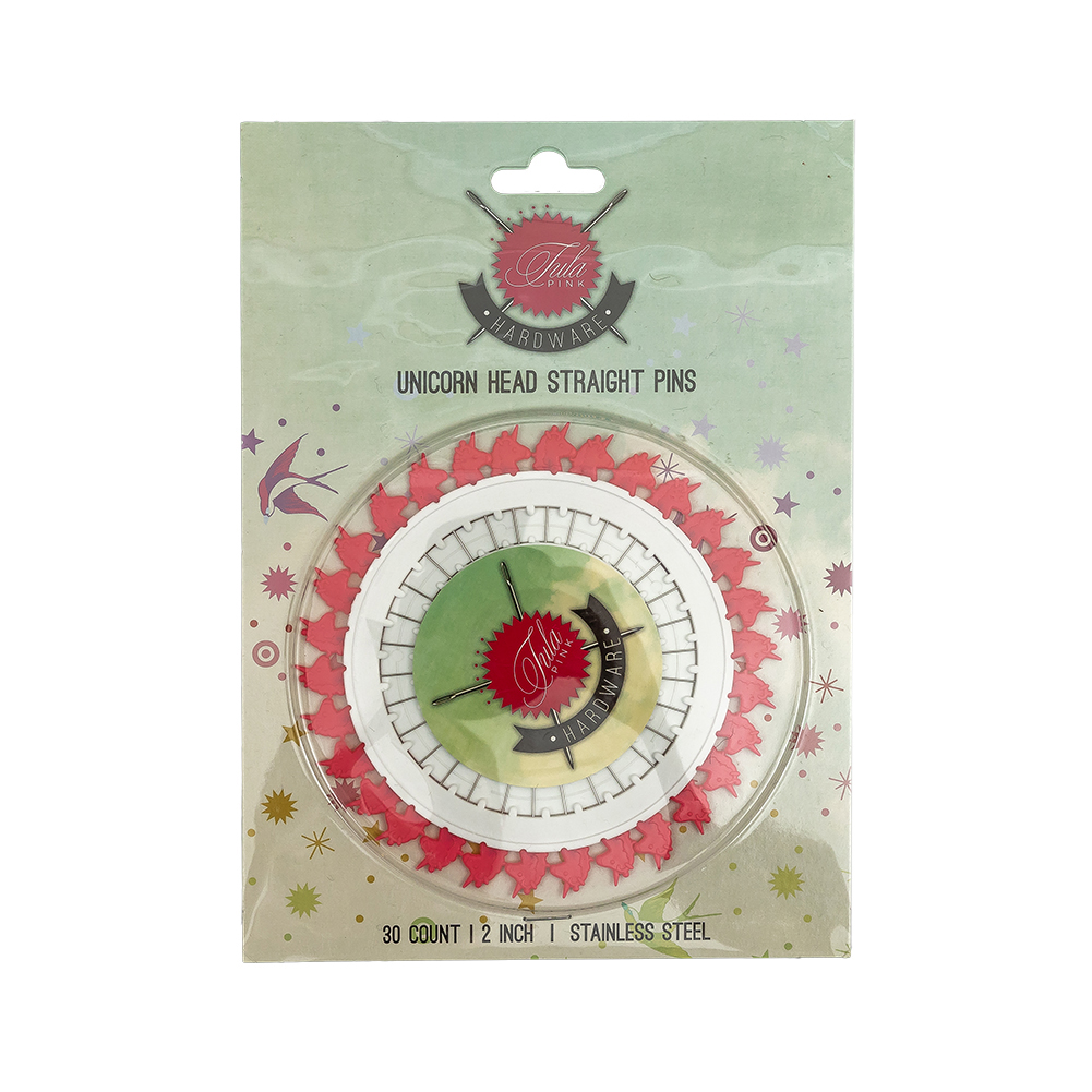 For a little bit of sewing magic, try these 2 inch Unicorn Head Straight Pins from whimsical sewing brand Tula Pink! Each of these neat wheels come with 30 fabulous pins, each topped with a hot pink unicorn head, putting a smile on your face each time you spot one hidden amongst your project.