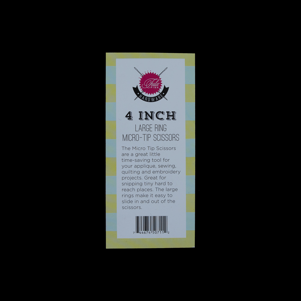 Shouldn't your gear reflect your style as well? These Tula Pink Oil Slick 4" Large Ring Micro Scissors is a must for the edgy and flashy sewer! Its German-grade steel is given a rainbow oil slick finish and anchored by a 22K gold-plated screw. Not only does it cut with ease, it has a micro tip for those hard to reach places. Perfect for any sewer or embroidery artist, give it as a gift or keep it for yourself!