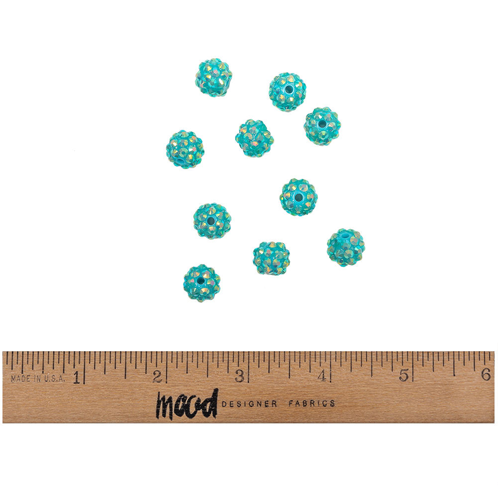 Decorate all sorts of whimsical projects with these Turquoise AB Rhinestone and Resin Faceted 12mm Beads! Each turquoise blue bead features sparkling facets, with an iridescent finish for an extra magical look. Chunky and definitely funky, these beads can easily be added to home decor, costumes, crafts, or avant-garde fashion projects.Please note: This listing contains 10 beads, with each bead 12mm in diameter. WARNING: Cancer and Reproductive Harm - www.P65Warnings.ca.gov.