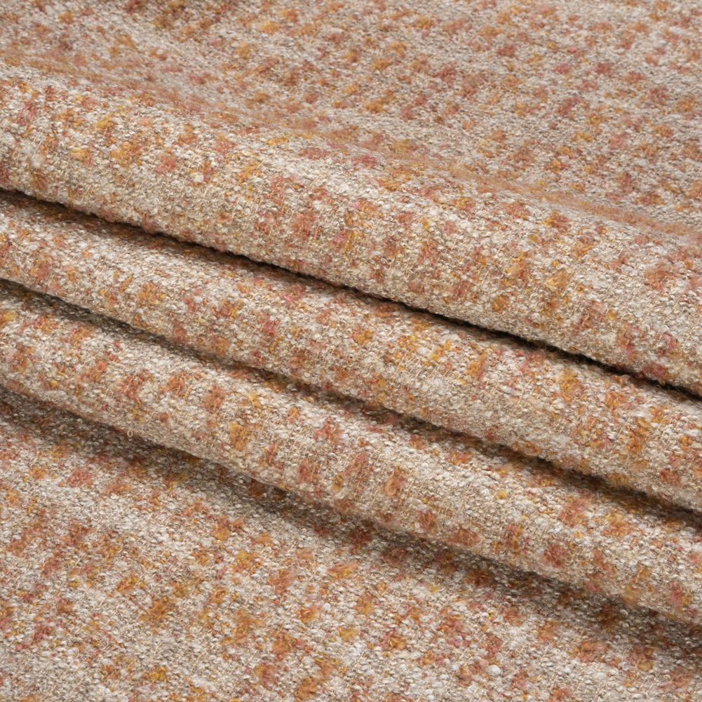 In colors reminiscent of elegant cameo necklaces, this Torlea Cameo Tweedy Upholstery Boucle introduces texture and pastels into your home decor. Light peach and tangerine yarn speckle a taupe face. Combining the flecked look of a tweed and the looped texture of a bouclé, this medium-weight fabric brings tactile and visual intrigue to your office, family room, and everywhere in between. With its malleable drape, easily reupholster the nooks, crannies, and curves of armchairs, sofas, ottomans, and more!