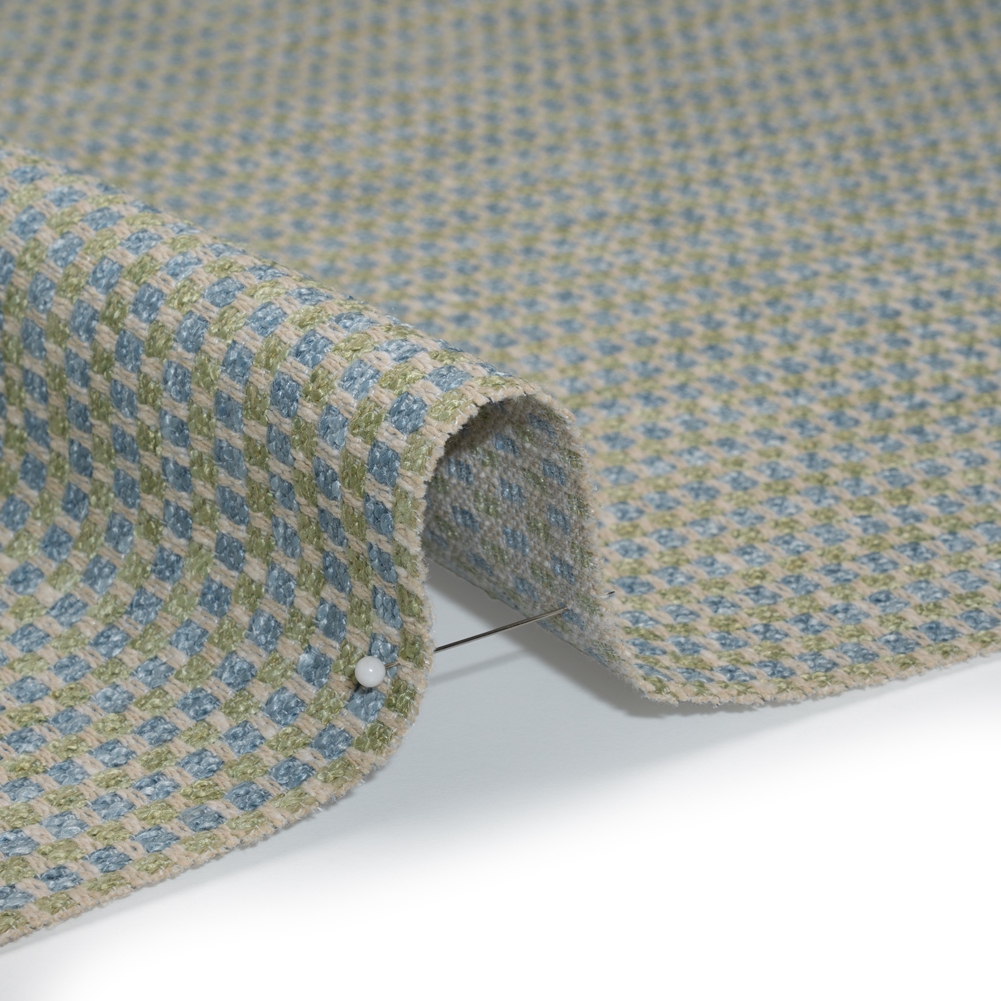Spring is in full bloom across your home when you use this Mint Basketweave Checks Tweedy Upholstery Jacquard.