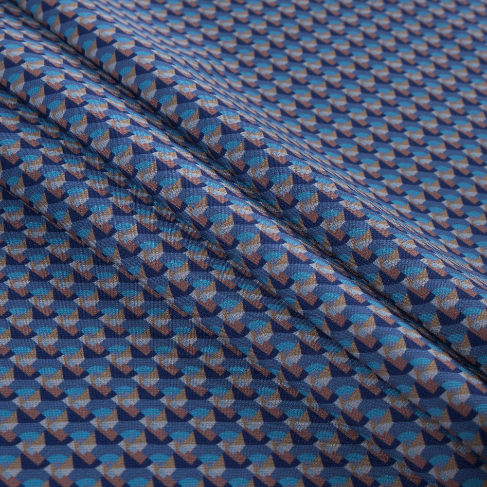 Twilight Purple and Niagara Geometric Double Faced Stretch Polyester Crepe