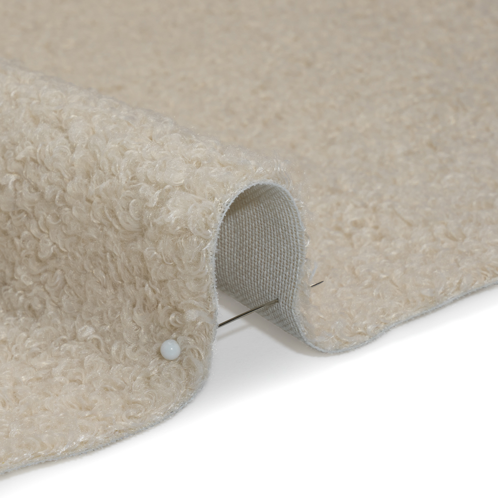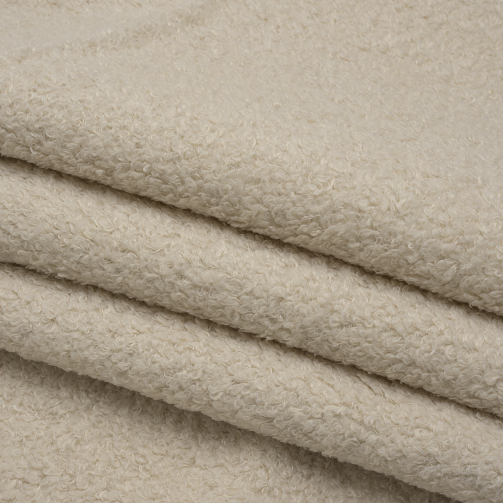 Snuggle up with this Bone Upholstery Boucle, featuring an ultra-soft hand and stain-resistant finish that’ll keep your projects pristinely lush.Suggested Projects: Upholstery, JacketsContent: 100% PolyesterStretch: NoneOpacity: OpaqueLike the hug of a teddy bear, the ultra-soft face of this upholstery boucle will keep you snug through colder nights. Turning harsh edges into cozy corners, boucle softens spaces while being anything but a quiet presence. Its looped texture adds warmth and dimension to any interior (from lake house to city loft), suggesting that stepping out of your comfort zone will land you somewhere more comfortable—literally. With its lightweight feel, malleable drape, and stain-resistant finish, this material suits home decor applications—including sofas, chairs, and lush pillows—and fashion projects like lush teddy bear jackets. Without stretch and opaque, a lining won’t be necessary for most applications.