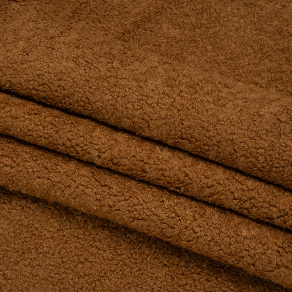 Snuggle up with this Caramel Upholstery Boucle! With an ultra-soft hand and stain-resistant finish, it’s ideal for bringing autumnal warmth into the home.Suggested Projects: Upholstery, JacketsContent: 100% PolyesterStretch: NoneOpacity: OpaqueLike the hug of a teddy bear, the ultra-soft face of this upholstery boucle will keep you snug through colder nights. Turning harsh edges into cozy corners, boucle softens spaces while being anything but a quiet presence. Its looped texture adds warmth and dimension to any interior (from lake house to city loft), suggesting that stepping out of your comfort zone will land you somewhere more comfortable—literally. With its lightweight feel, malleable drape, and stain-resistant finish, this material suits home decor applications—including sofas, chairs, and lush pillows—and fashion projects like lush teddy bear jackets. Without stretch and opaque, a lining won’t be necessary for most applications.