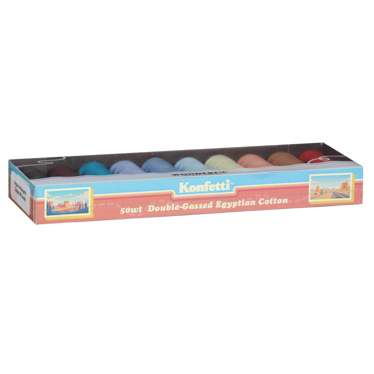 Celebrate the beauty of America with the Konfetti™ “America the Beautiful” Collection, specially curated for the AQS Creativity Challenge. This premium 50wt Egyptian cotton thread set includes 10 spools in each pack, featuring stunning hues inspired by iconic American landmarks and landscapes.