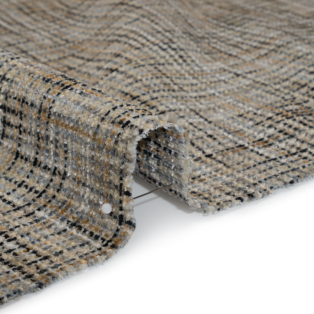 Reignite your love of lounging atop this Charcoal Striated Upholstery Chenille—featuring a soft, fuzzy hand and malleable drape.Suggested Projects: Ottomans, Sectionals, Armchairs, Throw PillowsContent: 100% PolyesterStretch: NoneOpacity: OpaqueYou’ll want to rush striate home to lay atop this charcoal gray, beige, and black striated upholstery chenille. Named after a caterpillar’s fur, chenille melds comfort and luxury atop its eye-catching face. The sumptuously soft texture is a midday-nap-instigator and compliment-creator, igniting conversations regarding its lustrous finish and welcoming cozy gatherings on its plush face. With a malleable drape, this fabric is ideal for both large and small upholstery projects, ranging from throw pillows and ottomans to sectionals and chaises.