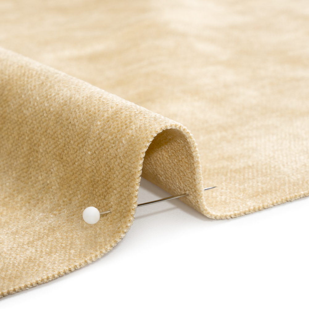 Balance harsh lines and dark decor with this soft and light Tonnet Buttercream Upholstery Chenille with Latex Backing. The khaki-colored face is soft and lustrous, inspiring luxe reupholstery projects and sophisticated interiors. With the reinforced backing, durability is not sacrificed for comfort.This relatively lightweight fabric is chaotic-home-approved—backed by durable latex, it easily drapes over the curves and crevices of any furniture. Create upholstery that you don’t have to worry about; from messy mornings on breakfast stools to boozy hangouts on sofas (and even to those unavoidable chair-cushion forts!), you can count on this fabric to provide a comfortable, stylish, and long-lasting seating experience.