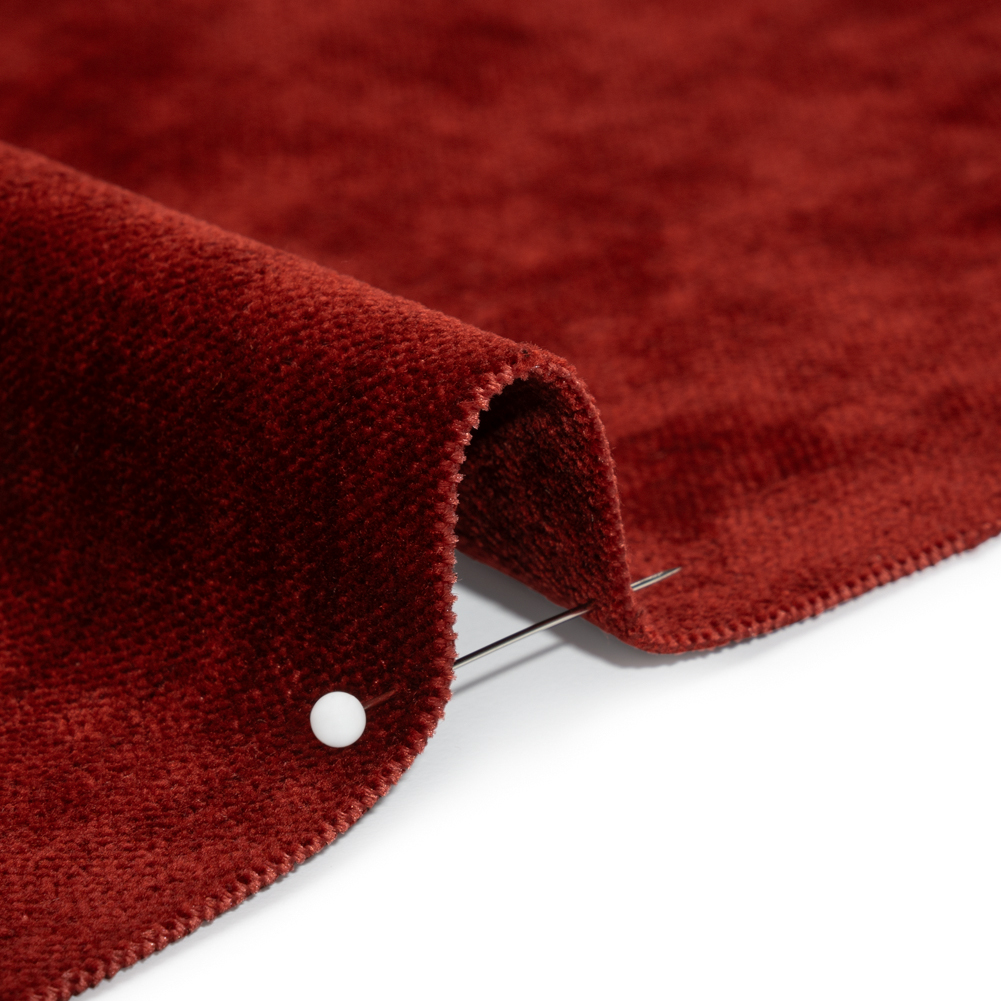 This Tonnet Chilipepper Upholstery Chenille with Latex Backing is almost too hot to handle! The ruby-red face is soft and lustrous, inspiring luxe reupholstery projects and sophisticated interiors.