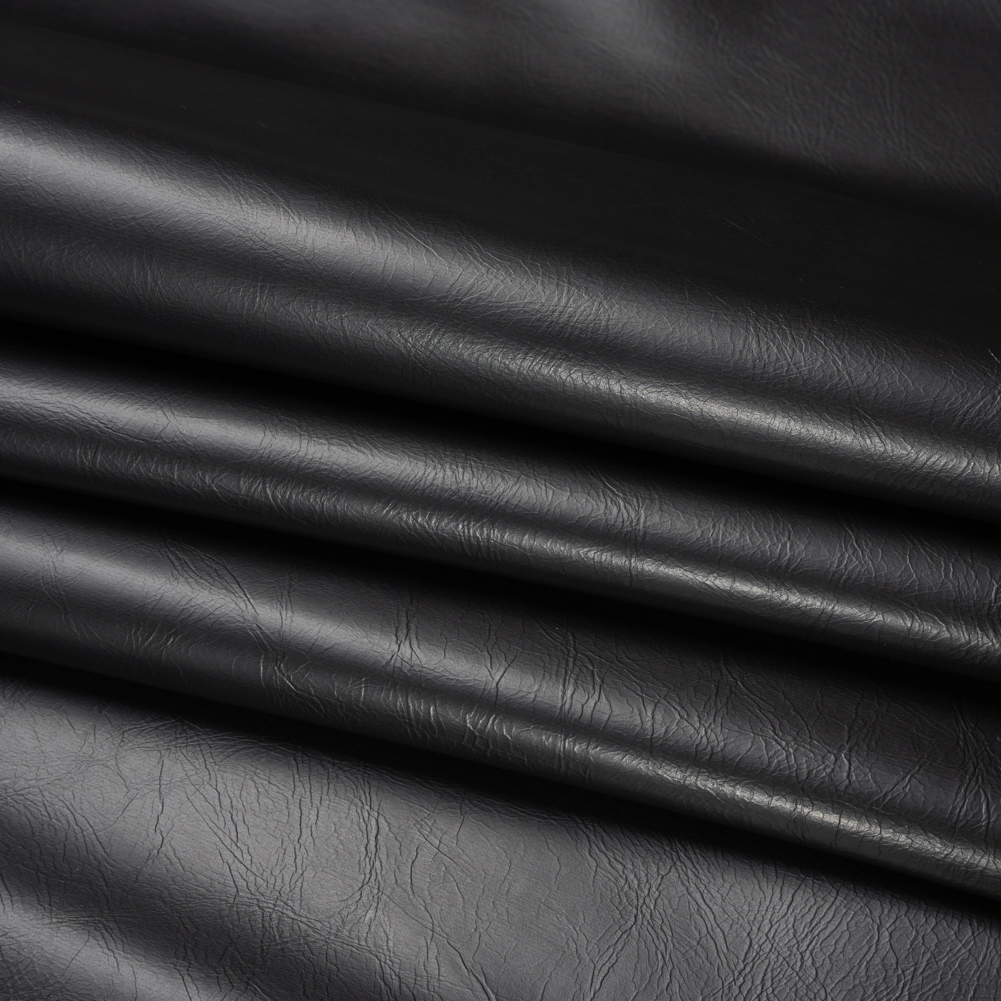 Inciting intelligent conversations and profound ideas, this Alida Black Faux Upholstery Leather with Brushed Fabric Backing is a black textile that has aged like fine wine—or has it? Made of phthalate-free PVC, this vegan leather offers an affordable route to worldly interiors without compromising the feel of luxury.Faux leather is as durable as it is timeless; it features an easy-to-clean face, a brushed fabric backing, and a medium-weight, pliable drape. The smooth, soft, and glossy face is textured by wrinkles, inspiring sophisticated armchairs, tufted couches, bar stool covers, and more. Plus, due to its nature, a lining is not required. WARNING: Cancer and Reproductive Harm - www.P65Warnings.ca.gov.