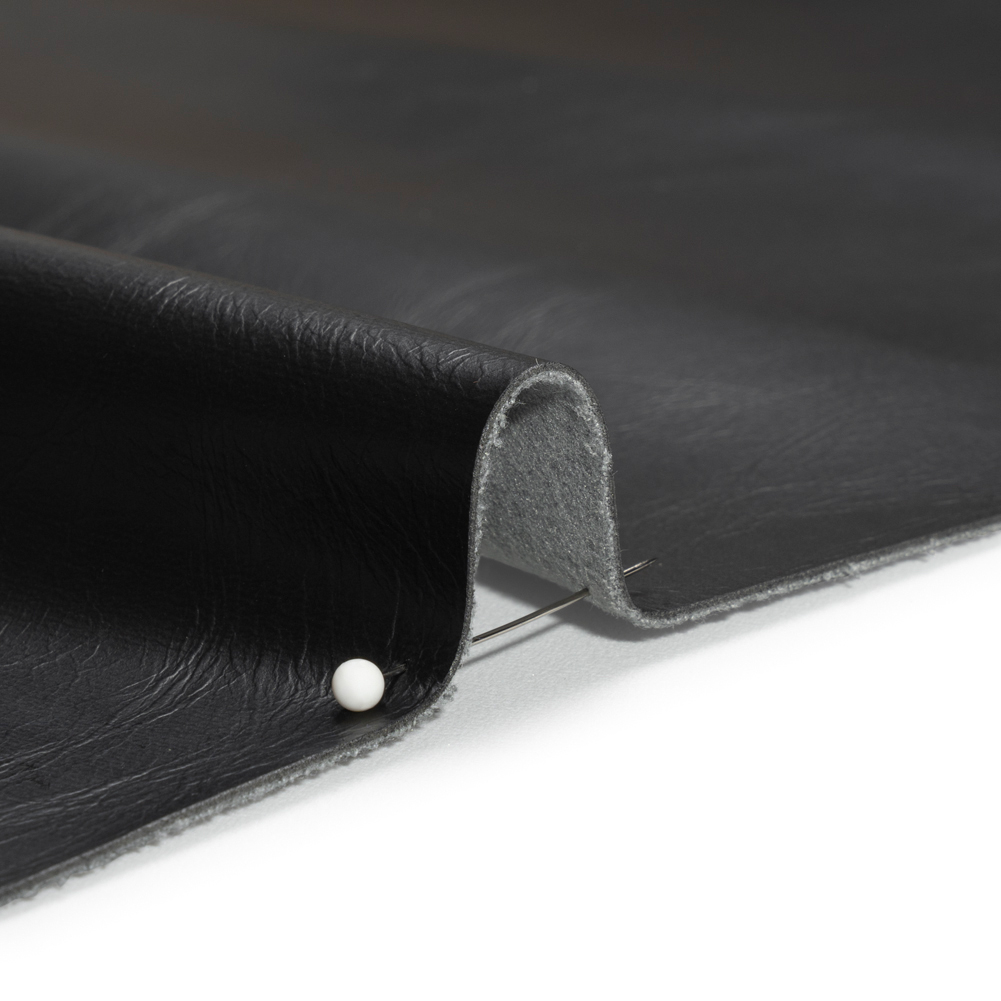Inciting intelligent conversations and profound ideas, this Alida Black Faux Upholstery Leather with Brushed Fabric Backing is a black textile that has aged like fine wine—or has it? Made of phthalate-free PVC, this vegan leather offers an affordable route to worldly interiors without compromising the feel of luxury.