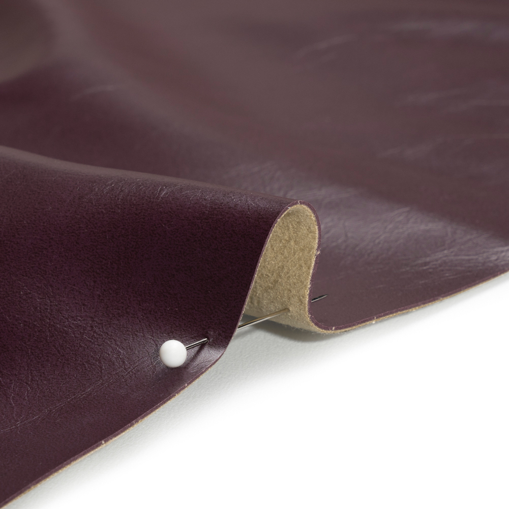 Classy wine nights and slow coffee mornings are welcomed by this Alida Eggplant Faux Upholstery Leather with Brushed Fabric Backing, a deep purple textile that has aged like fine wine—or has it? Made of phthalate-free PVC, this vegan leather offers an affordable route to worldly interiors without compromising the feel of luxury.Faux leather is as durable as it is timeless; it features an easy-to-clean face, a brushed fabric backing, and a medium-weight, pliable drape. The smooth, soft, and glossy face is textured by wrinkles, inspiring sophisticated armchairs, tufted couches, bar stool covers, and more. Plus, due to its nature, a lining is not required. WARNING: Cancer and Reproductive Harm - www.P65Warnings.ca.gov.