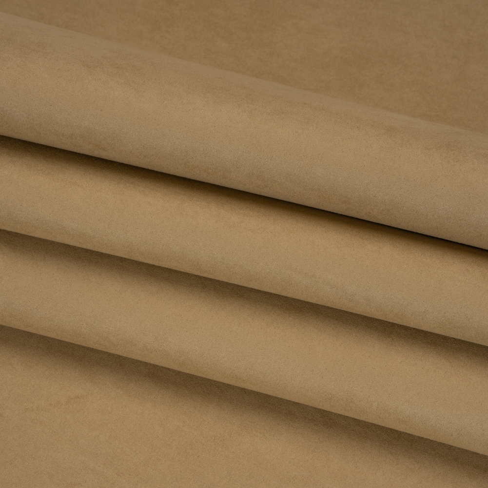 Stay grounded with the stunning earth tone of this Camel Upholstery Faux Suede. Featuring a luxuriously soft hand and malleable drape, this collection is ideal for integrating the neutral notes of nature into your home. Suggested Projects: Upholstery, Autumn JacketsContent: 100% PolyesterStretch: No StretchOpacity: OpaqueIn an earthy camel color, arboreal hues intermingle with a soft, lightly fuzzy hand to create luxurious and versatile upholstery faux suede. With a sturdy weight and a malleable drape, this material is equally suitable for home decor applications—including upholstery for couches, chairs or stools, and ottomans—and fashion projects like jackets! Without stretch and completely opaque, a lining won’t be necessary for most applications.