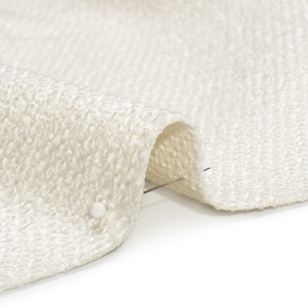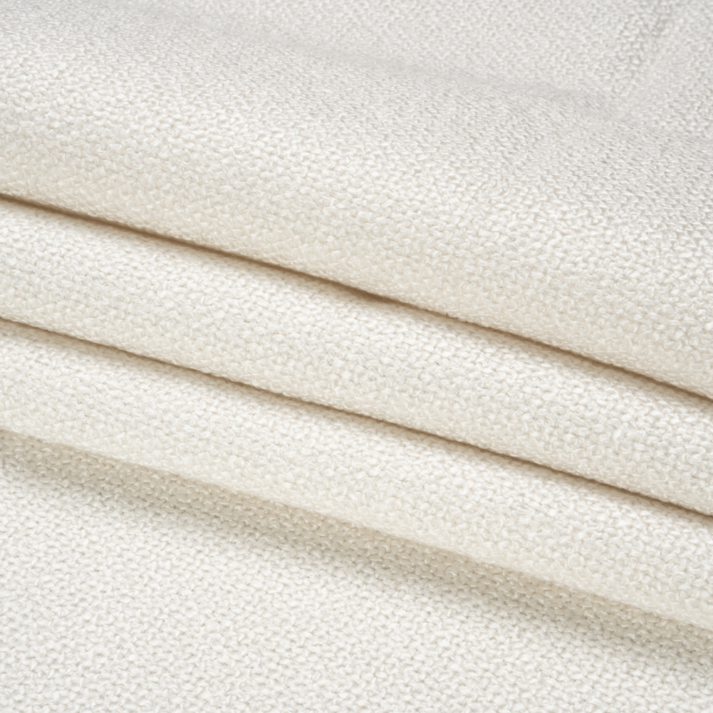 Leaning into midcentury modern designs, this Wyverstone Creme Upholstery Tweed with Latex Backing reminds us that less is more. Thick white yarn interlocks to boast a tactile, pebbly face. Reinforced by a latex coating on the back, this lustrous fabric is prepared to take on your busy household for years to come. Historically iconic and extremely durable, tweed brings timeless texture and visual intrigue into your home decor designs. With its structured, medium-weight drape, beginners and experts can easily upholster an armchair for a formal living room, an ottoman for a family room, or a tufted headboard for a bedroom.