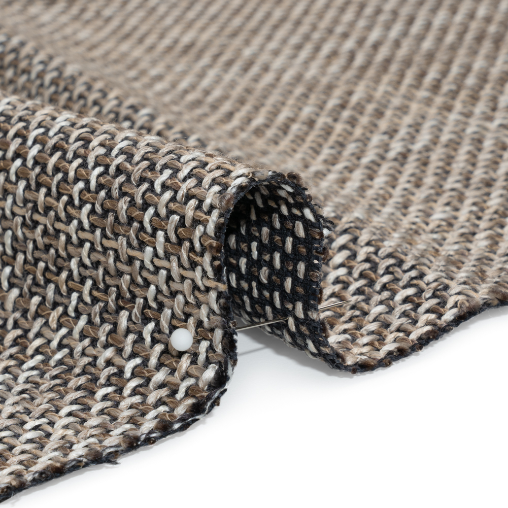 Focus on our Vernon Haze Upholstery Tweed to emerge from the haze and ignite your creativity! Horizontal and vertical threads of greige and pale gray weave through a black base, accented by a gorgeous luster. Hailing from the cold Scottish Highlands, tweed combines a rugged, irregular look with dimensional elegance to create a durable textile of timeless stature. It features a medium-weight feel and a semi-structured drape that promises to endure the test of time in your busy home. Curate creative corners with ottomans, sectionals, seat cushions, and more!