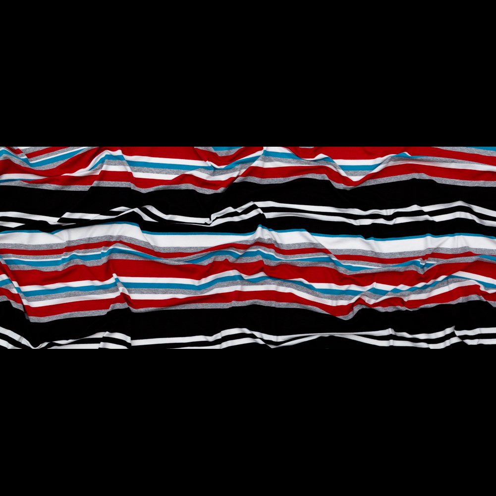 Very Cherry, Black and River Blue Barcode Striped Rayon Jersey