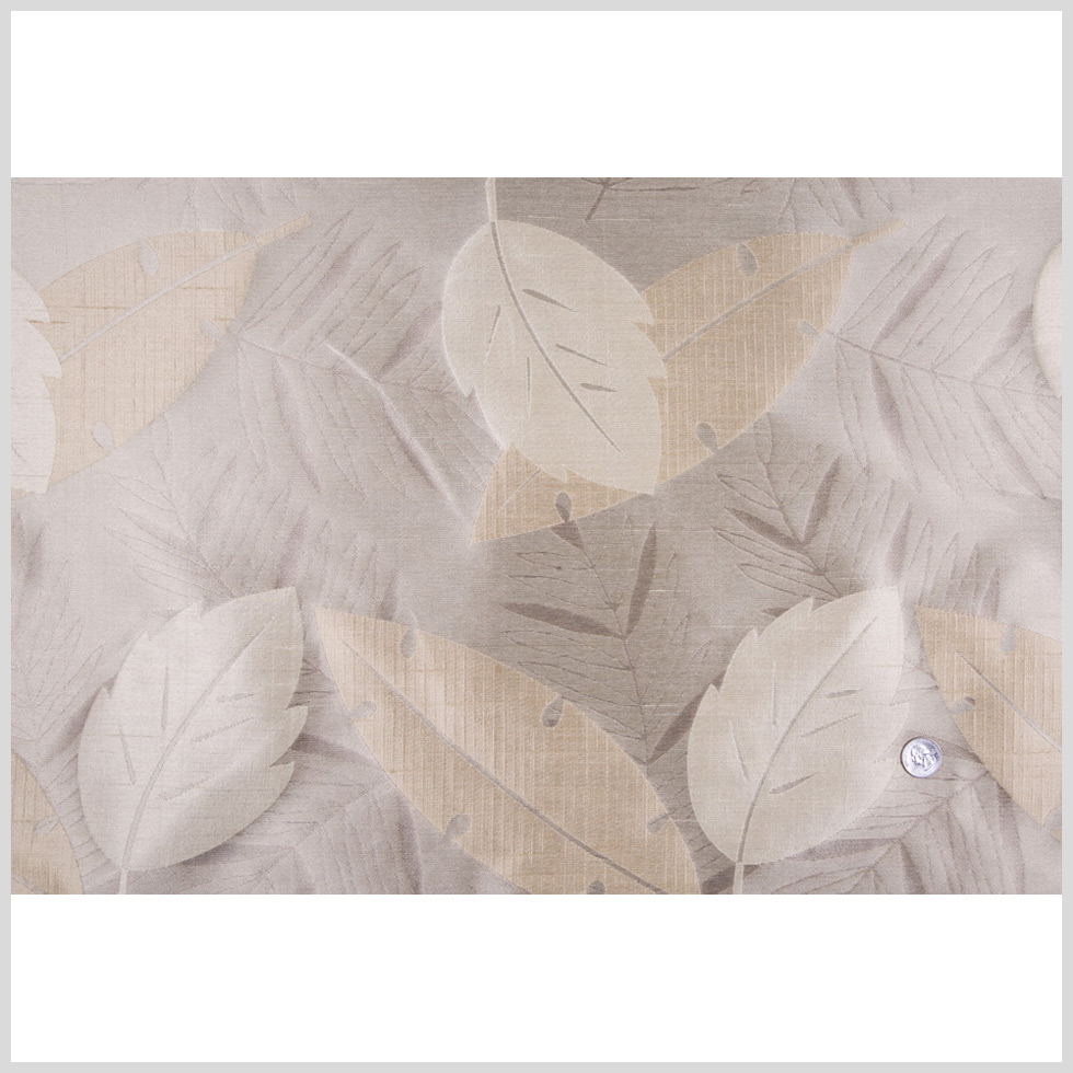 This is a woven polyester in Victorian gold with various size, shape, and color leaves. Very classy, medium weight, great for drapes.