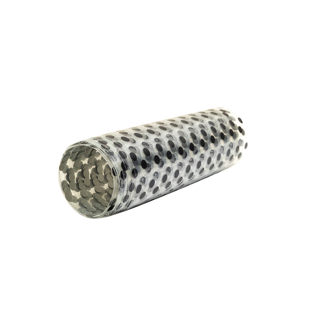 Decorating your garments has never been easier, thanks to this Vintage Alternating Black Circles on Clear Iron on Film! Simply apply heat to the plastic backing, and voila! Alternating rows of shiny black polka dots appear across the fabric. Four inches wide, spruce up the hems of thrifted jean jackets and bell-bottoms, or perhaps craft a statement tote bag.Please note: Always test a small swatch of fabric with this film first to make sure that it interacts well with your fabric. Each individual dot is 4mm across, with the space between rows measuring half an inch wide. The vertical repeat measures five-eighths of an inch wide.Directions:Cut desired amount of trim and lay the sticky side down neatly on your fabric.Apply heat to the vinyl backing (press cloth only needed for delicate fabrics).When ironing, constantly move your iron and use pressure to evenly distribute heat.Avoid steam so the plastic doesn't melt.After 40-50 seconds, remove the iron and delicately remove plastic film. WARNING: Cancer and Reproductive Harm - www.P65Warnings.ca.gov.