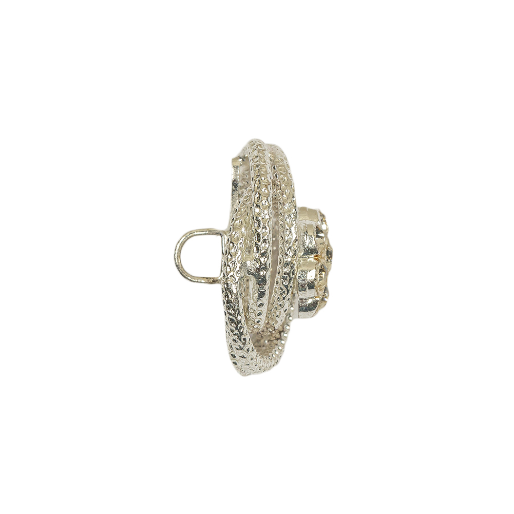 Glimmer and gleam with Mood's selection of rhinestone buttons offered in a sparkling range of colors, sizes, and shapes! Rhinestone buttons are fabulous for creating captivating closures on coats, capes, and clutches, or for adding some sparkle to basics like blouses, suiting separates, and even denim! This particular Vintage Crystal Rhinestone Floral Centered Open Framework Shank Back Button features a small, silver flower with tiny transparent rhinestones encompassing its shape. Surrounding the flower is a bright, white-silver grouping of circular rings overlapping each other, creating a modern, floral appearance. The reverse side of the button has a bar shape that goes across the width of the button with a loop in the center for easy application. This fabulous button is available in sizes 32L/20mm with a gauge of 7.88mm.Please note: Due to its high-quality true vintage vibe, there may be slight discoloration on some buttons, which adds to their unique charm!