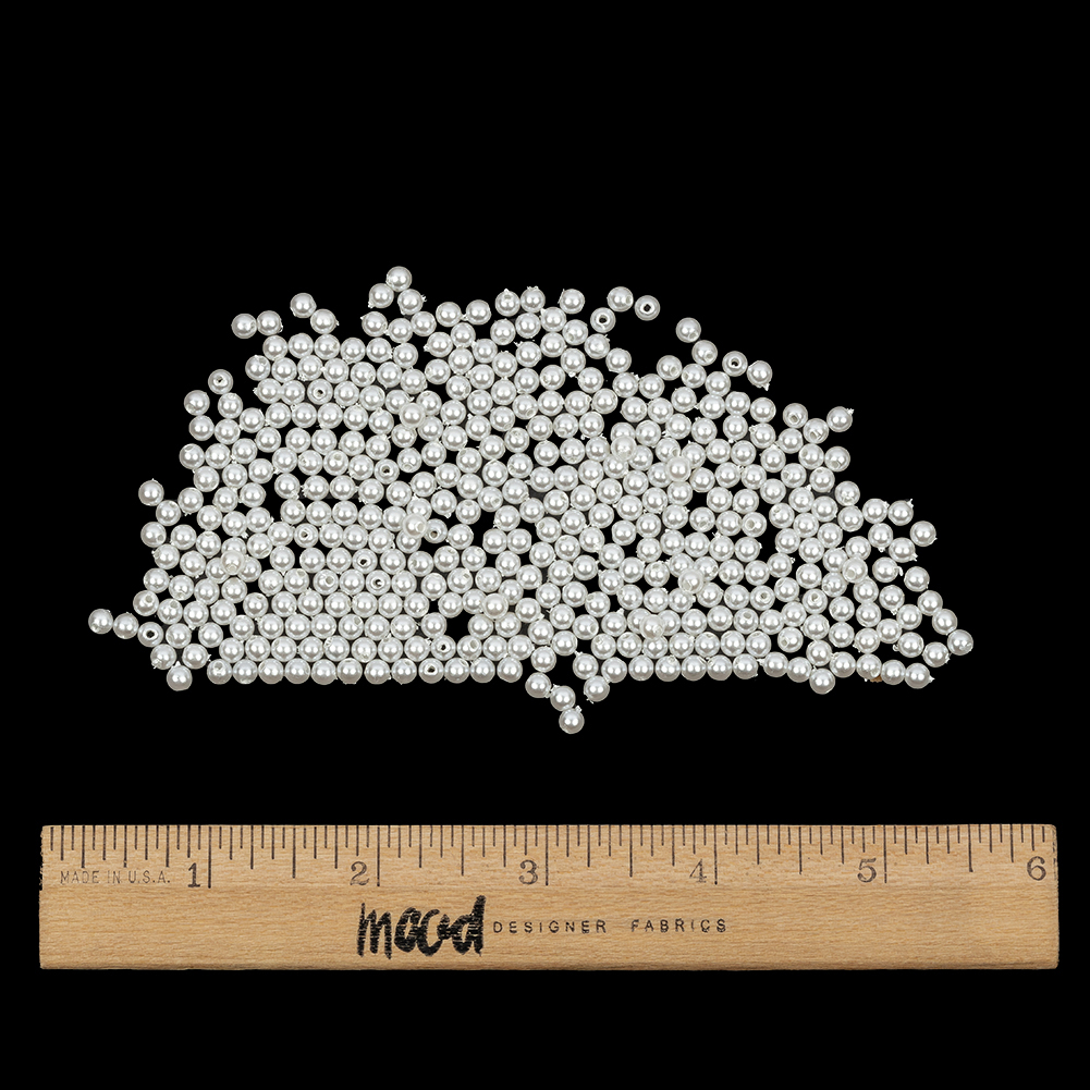 Find the perfect accent for any idea in this Vintage Faux Pearl Wired Bead Strand. Shimmering white pearls are strung onto a stiff, dark metal wire, making it ideal both for forming avant-garde shapes and details or for removing the beads from the wire to complete elegantly stitched beadwork. Decorate statement sleeves, boned bodices and corsets, or waistlines or dresses and skirts, or create any number of jewelry and accessory designs.Each pearl is approximately 3.88mm in diameter, while the entire length of beads strung on the wire is 60 inches (though the wire itself is longer).Please note: As this item is true vintage, it may feature occasional imperfections as a result of its age, adding to its unique charm!