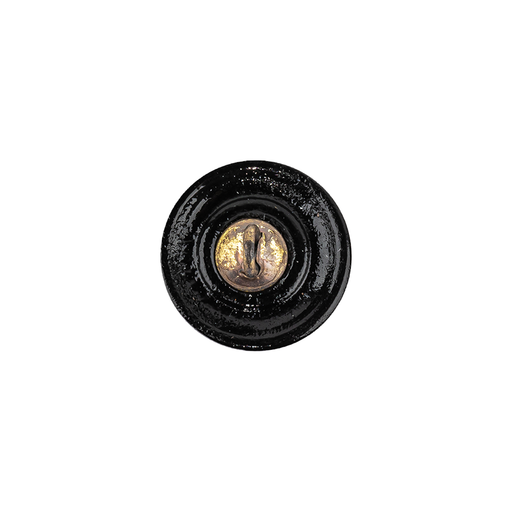 Mood carries a variety of glass buttons in all shapes, sizes, and colors! Glass buttons are perfect for any number of applications; from coats to blouses, to pillow accents or purses. This collection of Floral Shank Back Glass Buttons features a geometric floral motif with a rim of dots, all in metallic golden bronze with a black ground. The reverse is concave and solid black with a metal shank back for easy sewing! Available in sizes 28L/18mm and 22L/14mm and three additional colorways, this enchanting button has a gauge of 5.03mm.
