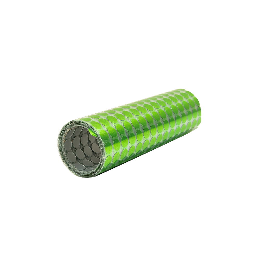 Decorating your garments has never been easier, thanks to this Vintage Metallic Emerald Dots on Clear Iron on Film! Simply apply heat to the plastic backing, and voila! Shiny and playful emerald green dots appear across the fabric.