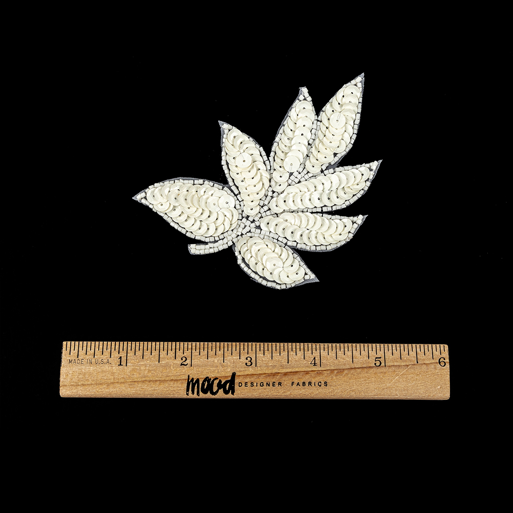Vintage Off-White Sequins and White-lined Beaded Leaf Applique - 4" X 3"