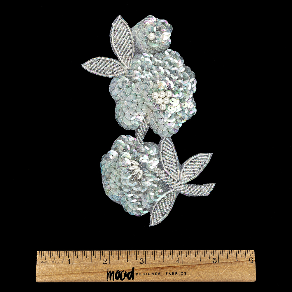 Vintage Pearl, Crystal Iris Sequins and Beaded Floral Applique - 6" x 3.375"