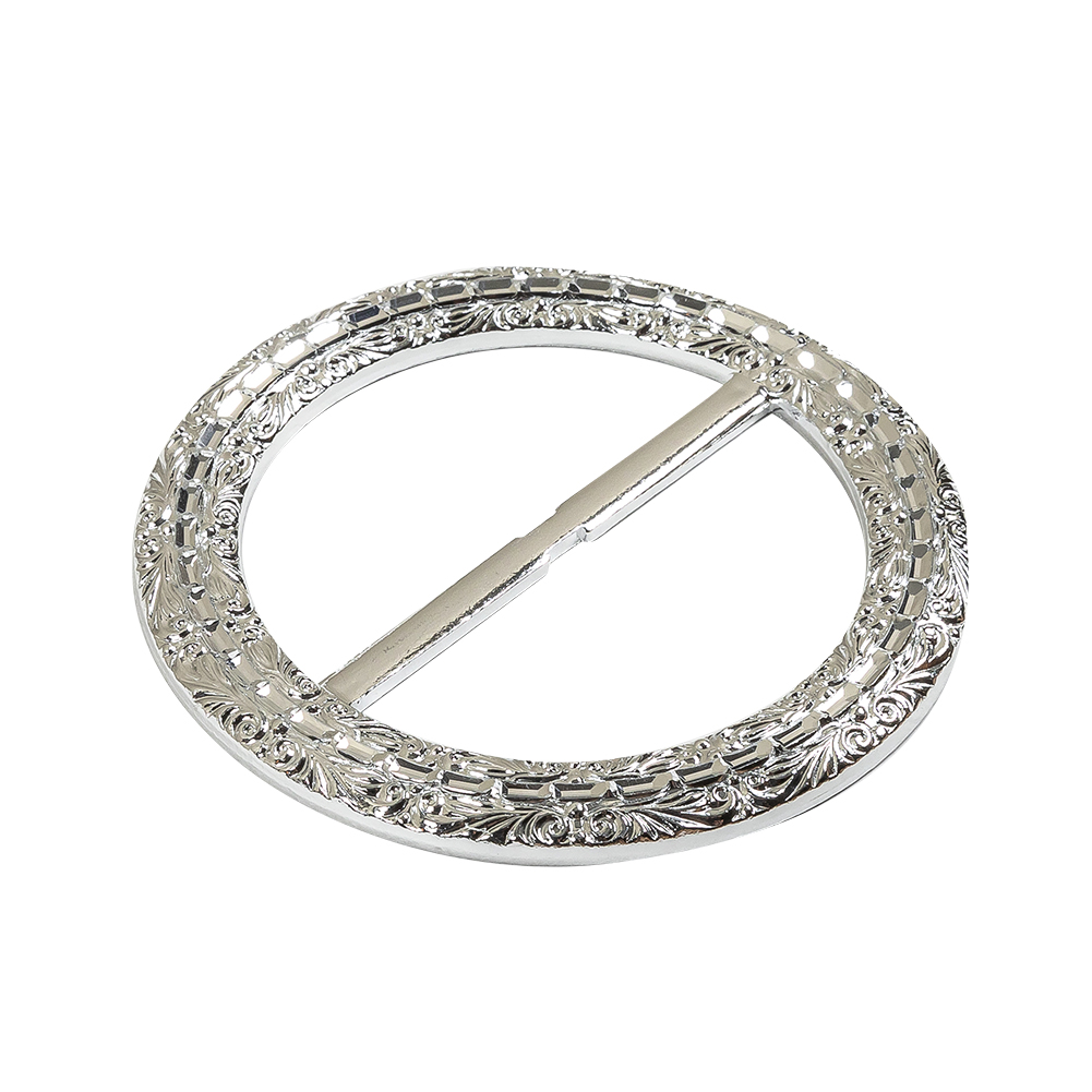 For a shiny, sensational touch, try our Vintage Silver Classical Swirls Round Slider with Faceted Silver Band! Classical swirls mix amongst a silver background, interrupted by a sparkling silver band. Give belts on jumpsuits, dresses, trenches, and more a little extra oomph!Please note: This slider measures 3¼ inches long by 3¼ inches wide, and will fit a strap up to 2½ inches wide.