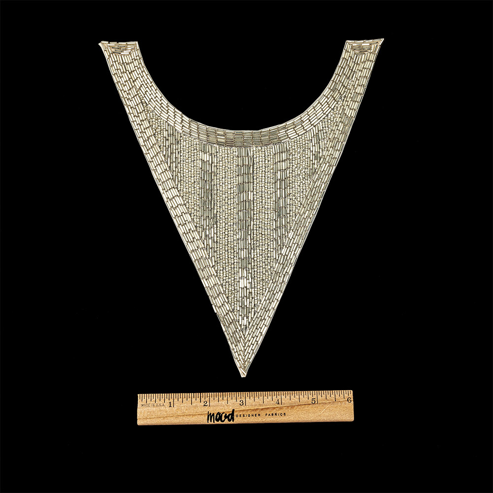 Vintage Silver-lined Chop and Bugle Beaded Triangular Collar Applique - 10" x 8.625"