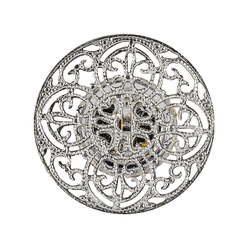 Glimmer and gleam with Mood’s selection of Swarovski® rhinestone buttons offered in a sparkling range of colors, sizes, and shapes! Rhinestone buttons are fabulous for creating captivating closures on coats, capes, and clutches, or for adding some sparkle to basics like blouses, suiting separates, and even denim! This particular Swarovski Pearl and Silver Metal Open Framework Rhinestone Button features a raised, champagne-tinted shiny pearl at the center situated in a light silver metal setting, surrounded by an intricate, open framework design in the same light silver.
