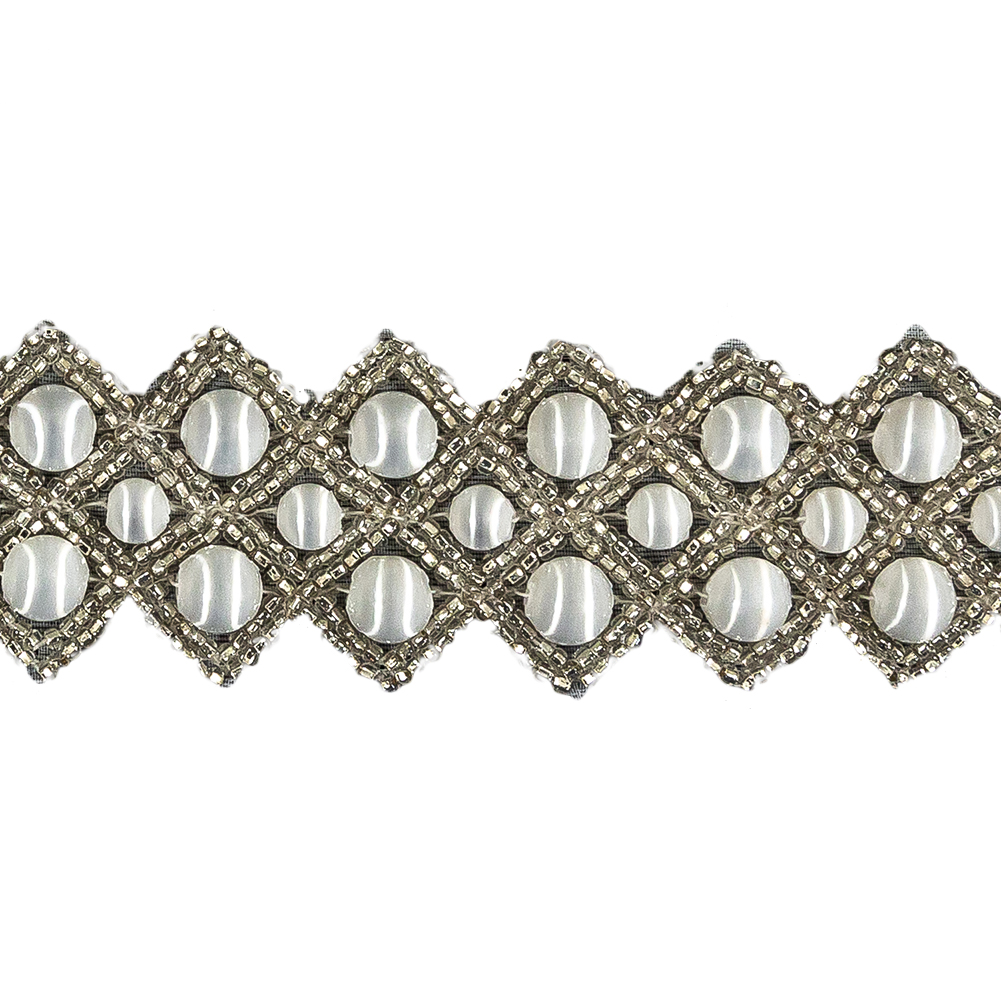 Vintage White and Silver Diamonds Beaded Trim - 1.25"