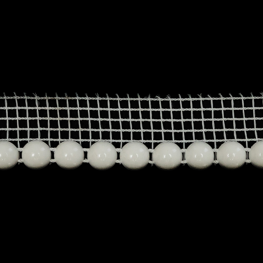 Vintage White Circular Beaded Trimming with White Mesh Lip - 0.5"