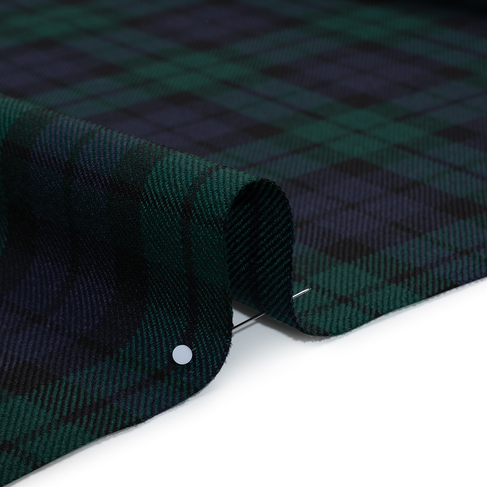 Virgin Wool Twill Made in Italy - Blue and Green Black Watch Plaid