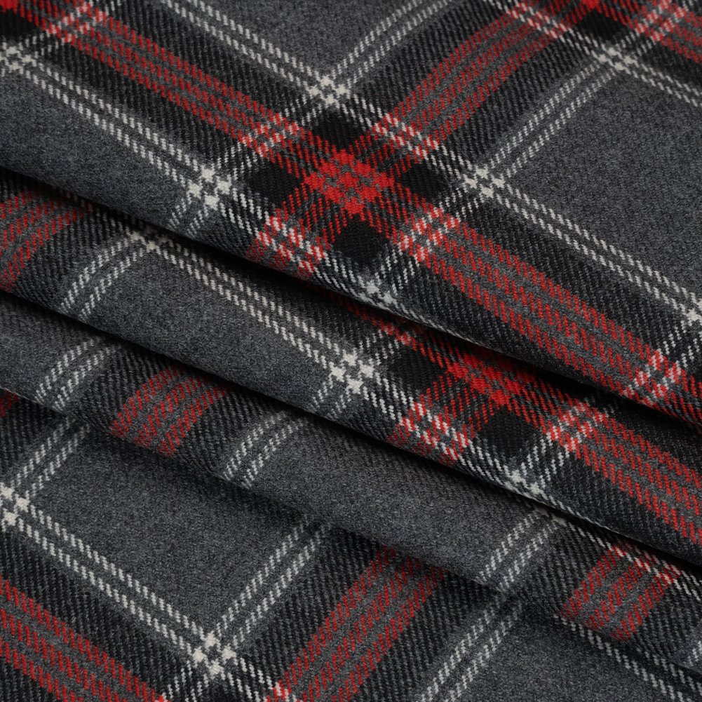 Virgin Wool Twill Made in Italy - Heathered Gray and Red Plaid