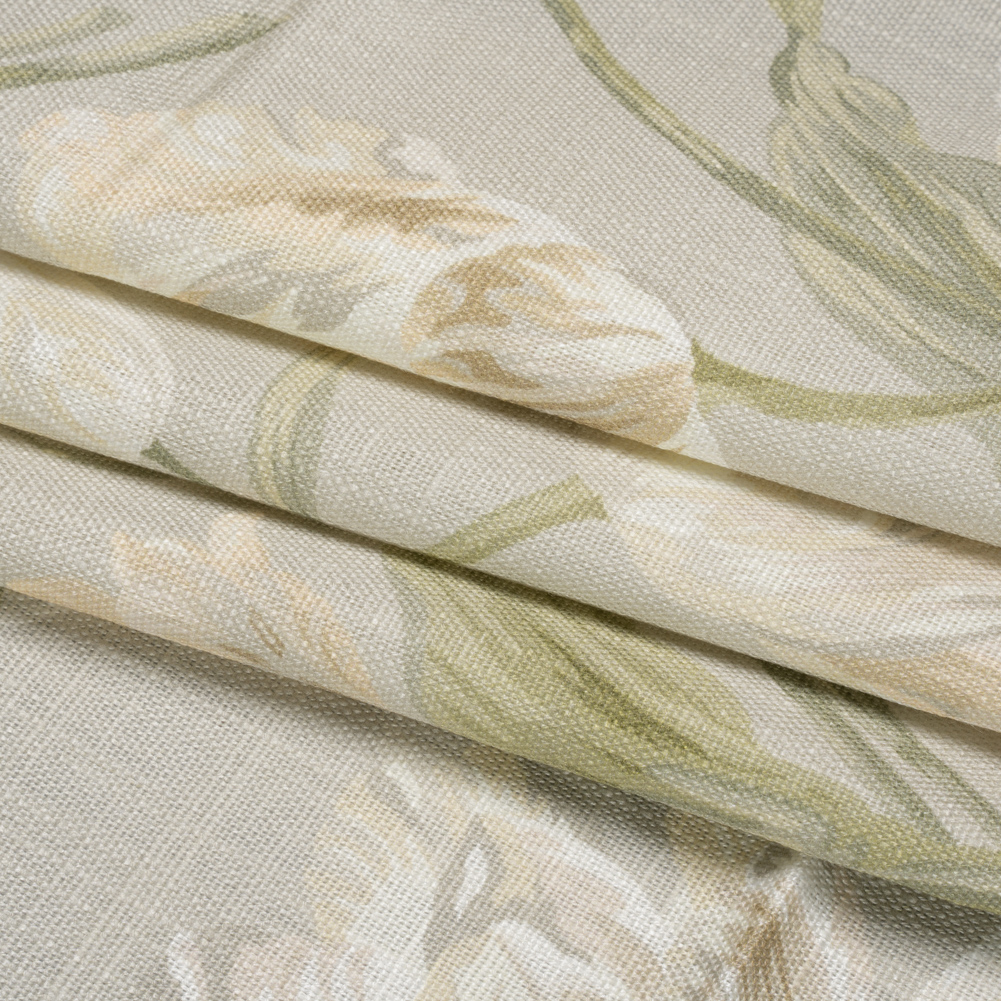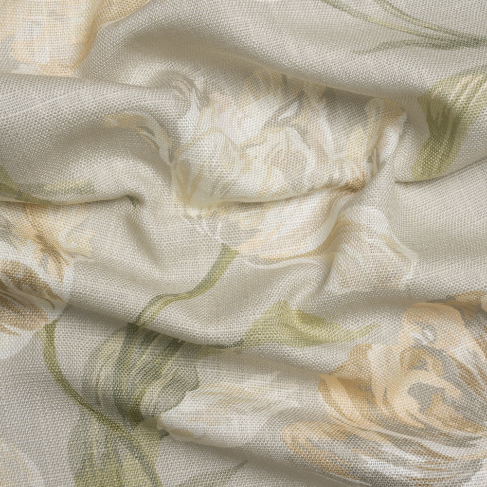 Viscose and Linen Drapery Woven Print - Sage Painting Flowers - British Imported