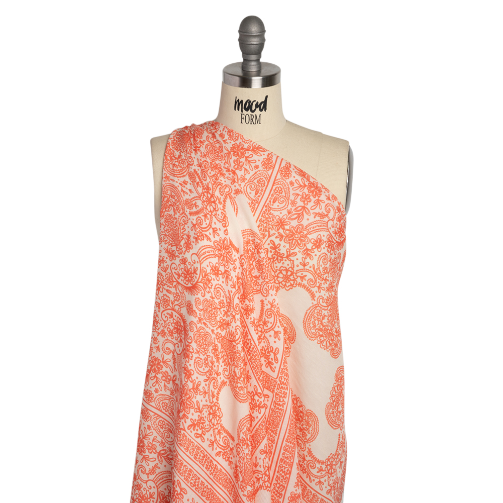 Viscose and Linen Twill Panel – Peach Florals and Squiggles – Mood Exclusive Peachy Standards