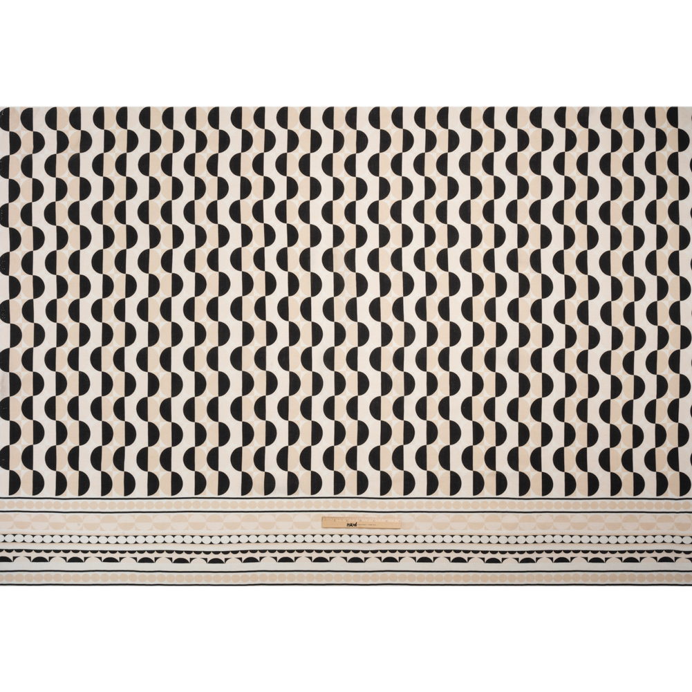 Our fun Mood Exclusive Black Circle Back Viscose and Linen Woven will have you coming back to it again, and again, and again, and again and... In an exciting experiment with a monochrome color palette and simple shapes, the face pairs black with white, beige with cream, squares with semi-circles. The vertical tiling is uniquely hypnotic, while the horizontal rows at the bottom bring a fun contrast to the design.This woven is lightweight and supple, featuring a slubby face and a cool hand. The easy-going feel of linen makes it a perfect warm-weather fabric, quick to become a vacation staple, a casual workplace go-to, and everything in between. Relaxed looks are just a stitch away; create button-ups, wide-legged pants, pinafore dresses, and more! Translucent; a lining is suggested if total opacity is desired. Please note that this panel measures 53" wide by 37" long.