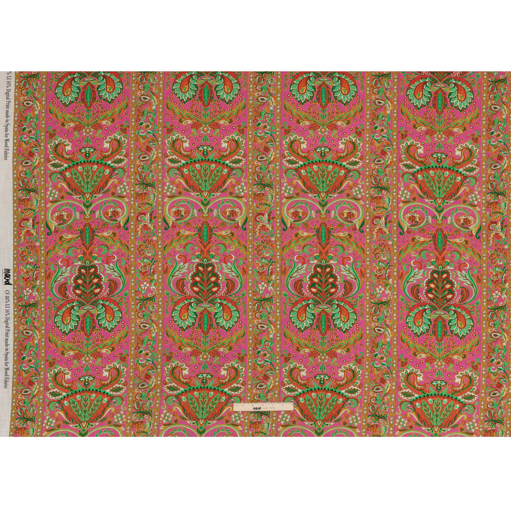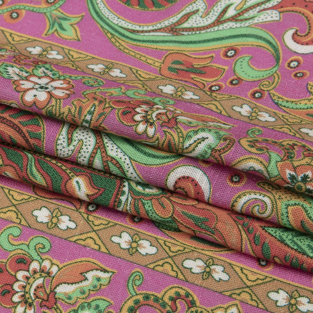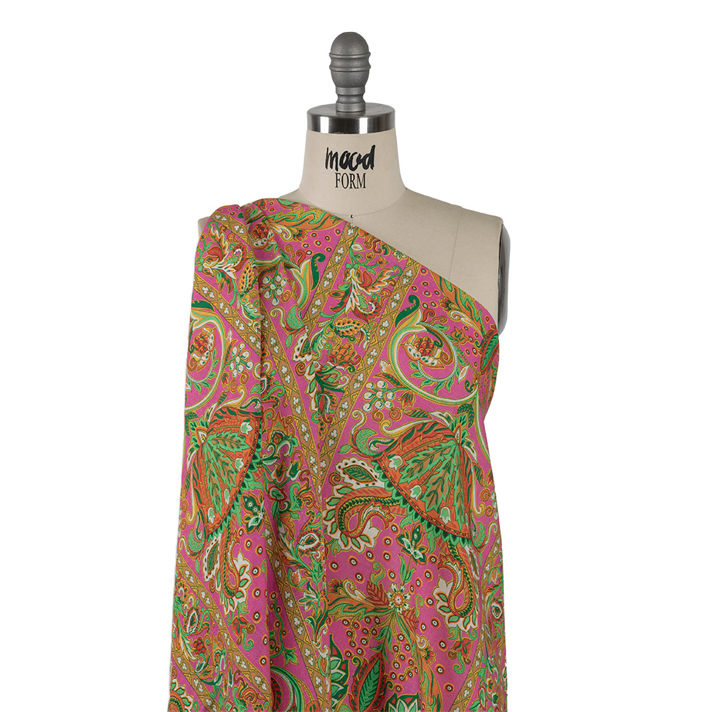 Viscose and Linen Woven - Pink Floral Paisley Stripes - Locust Lily Print - Mood Exclusive Gisele Collection