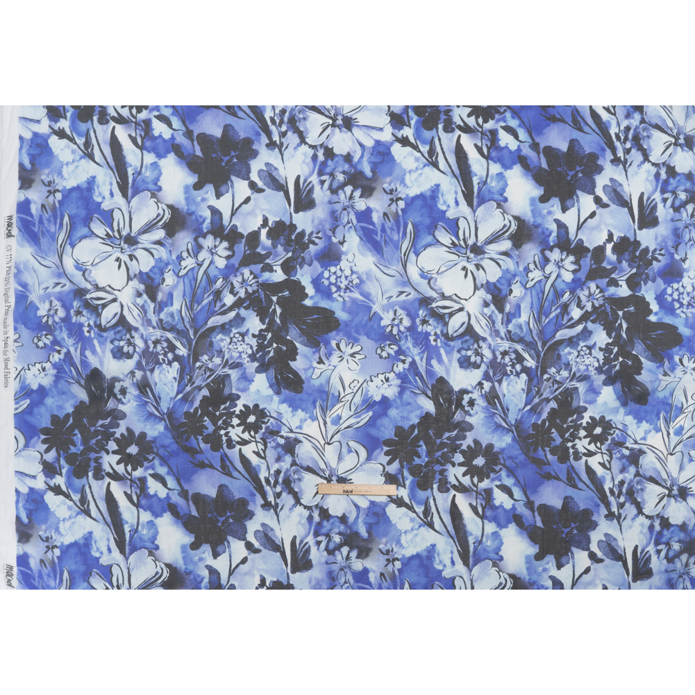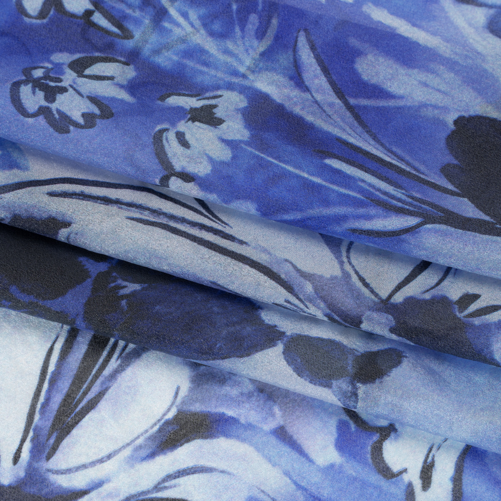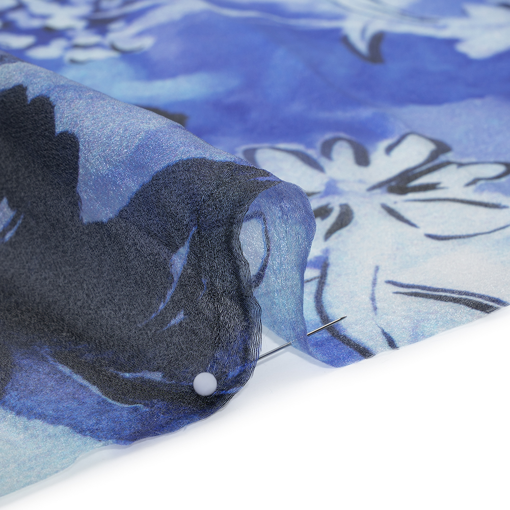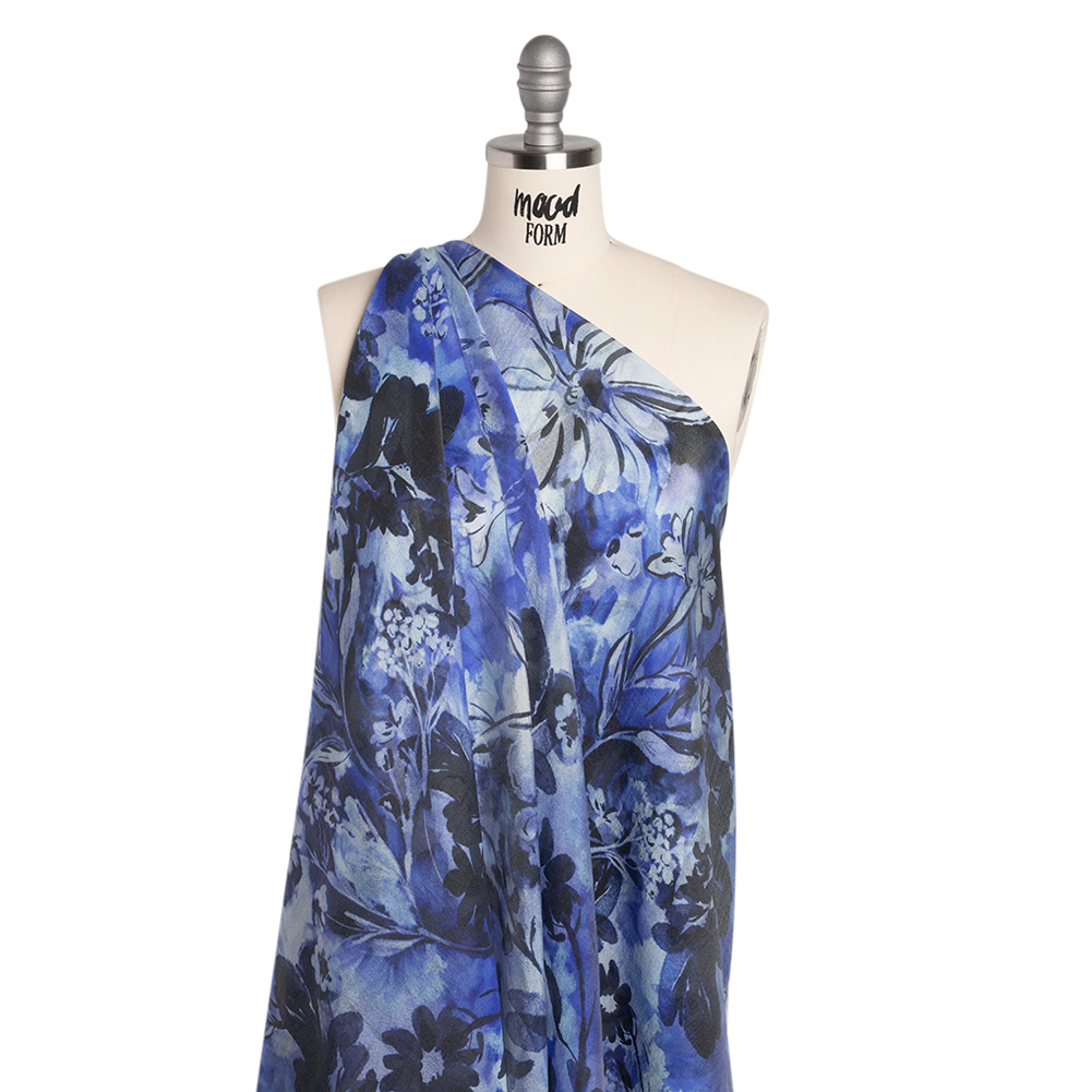 Viscose and Polyester Crepe Organza - Royal Blue and Black Dreamy Florals - Mood Exclusive Dream Weaver Print