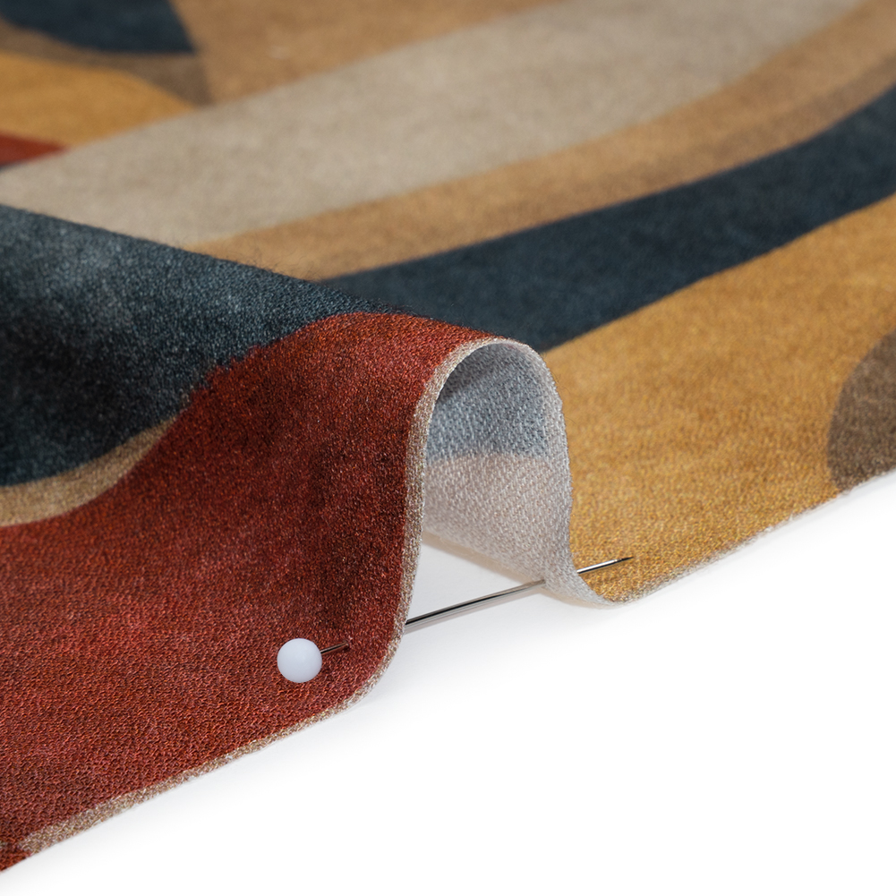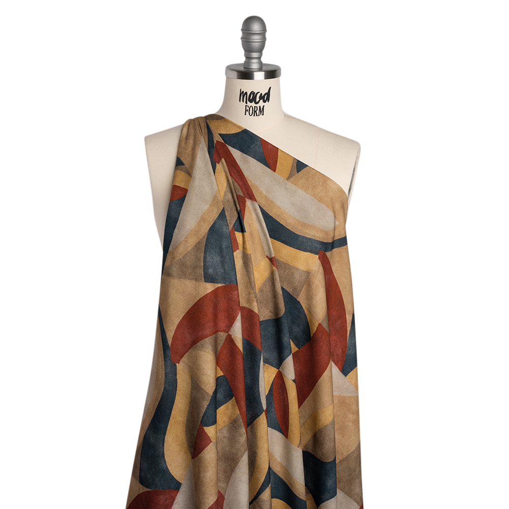 Set your intentions for this Mood Exclusive Red Drifting Intentions Viscose Crepe before you start working with it—featuring a smooth, slightly grainy hand and fluid drape.Suggested Projects: Dresses, Skirts, Shirts, ShortsContent: 100% ViscoseStretch: NoneOpacity: TranslucentAbstract shapes in shades of beige, red, blue, and brown flow effortlessly across the surface of this viscose crepe. Much like the journey of creativity itself, the design shifts and drifts, with each curve and corner sparking new inspiration, inviting you to lose yourself in its fluid, ever-evolving forms. Crepe fabrics are well-known for their signature textured surfaces, made up of tightly twisted yarns. With a grainy yet altogether smoother hand than the usual crepe and a fluid drape, this fabric easily inspires dreamy, flowing silhouettes. Design with bouncy garments and simple day-to-night transitions in mind, crafting billowing blouses, relaxed dresses, pleated skirts, breezy button-ups and more! Translucent, considering a lining for complete opacity and additional structure.