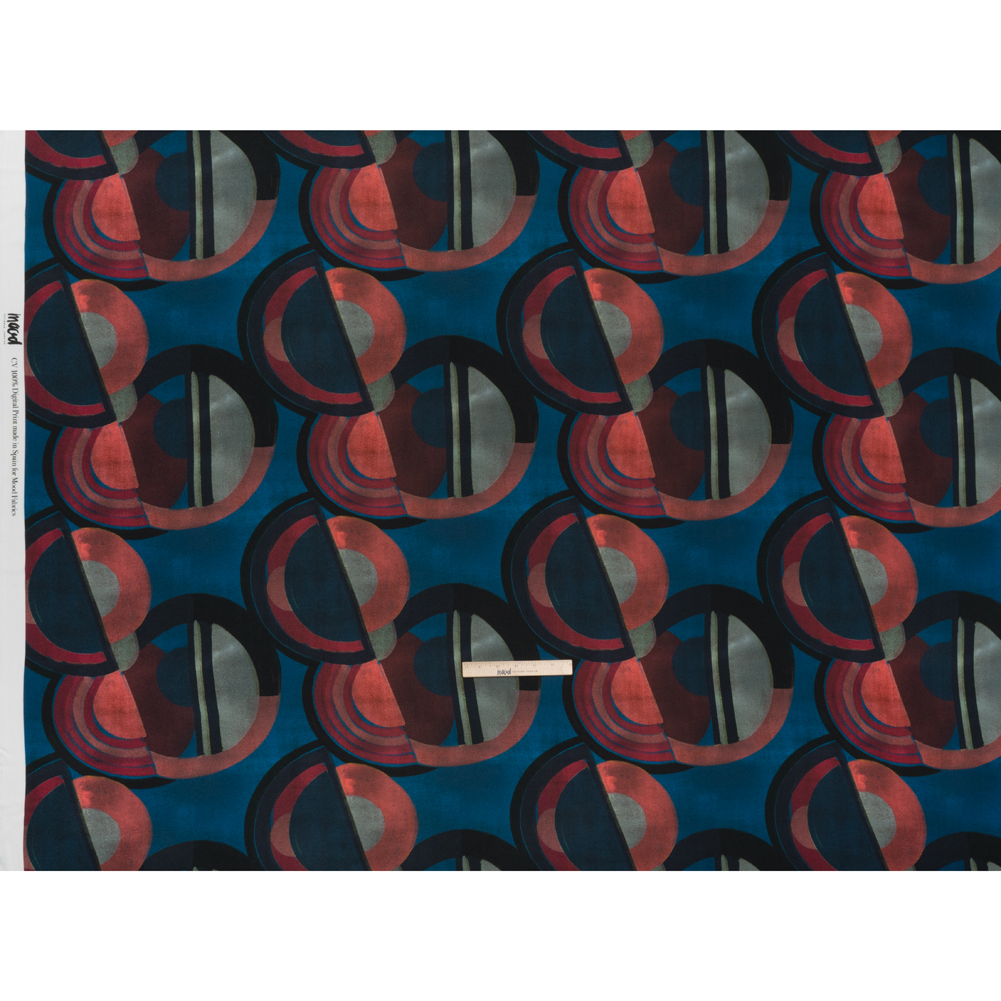 Viscose Crepe – Berry Red, Deep Blue and Navy Soft Geometrics – Mood Exclusive Orphic Orbits Print