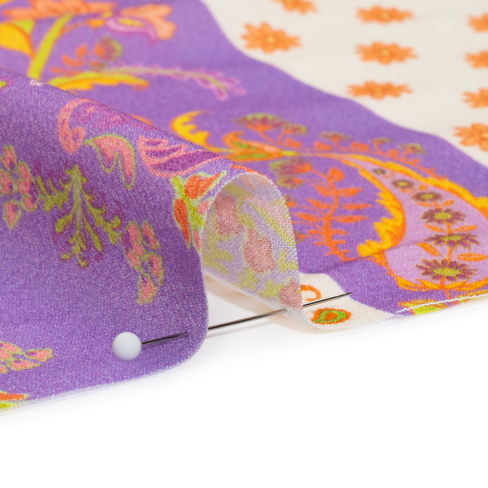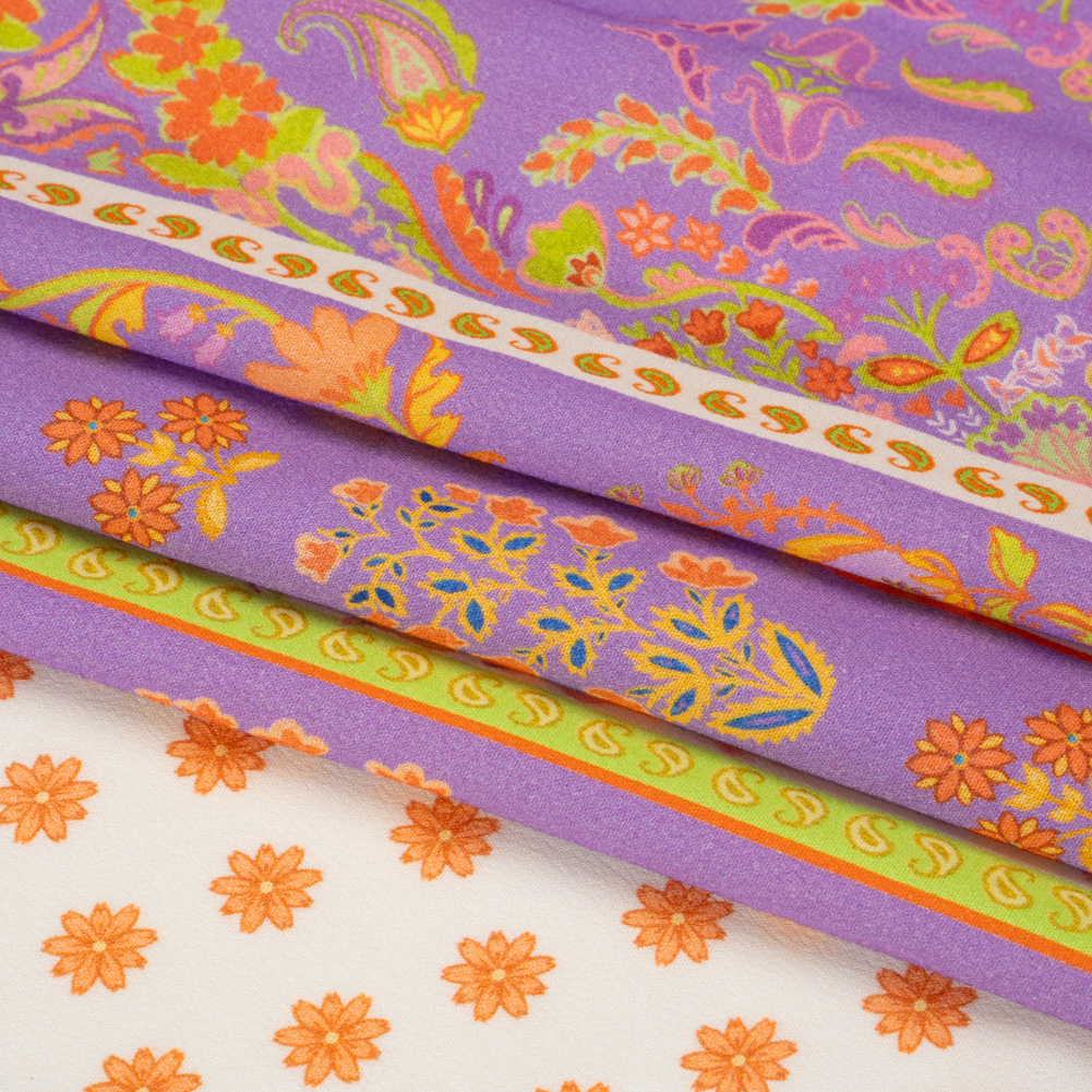 Be the first to review “Viscose Crepe Print – Cream, Purple and Lime Green Floral Stripes – Mood Exclusive Spring Fling”