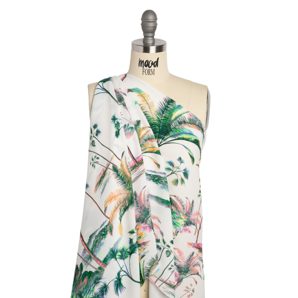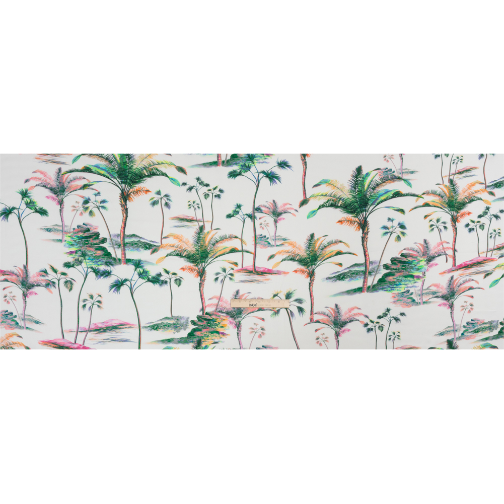 Viscose Crepe Print - Green, Pink and White Palm Trees - Mood Exclusive Shore Thing