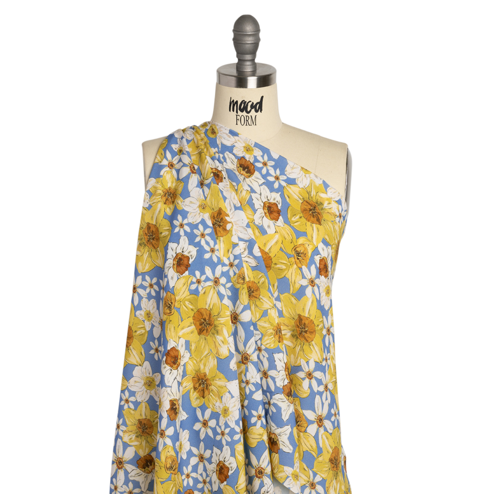 Viscose Crepe Print - Sky Blue, Yellow and White Floral - Mood Exclusive Crisp and Clear